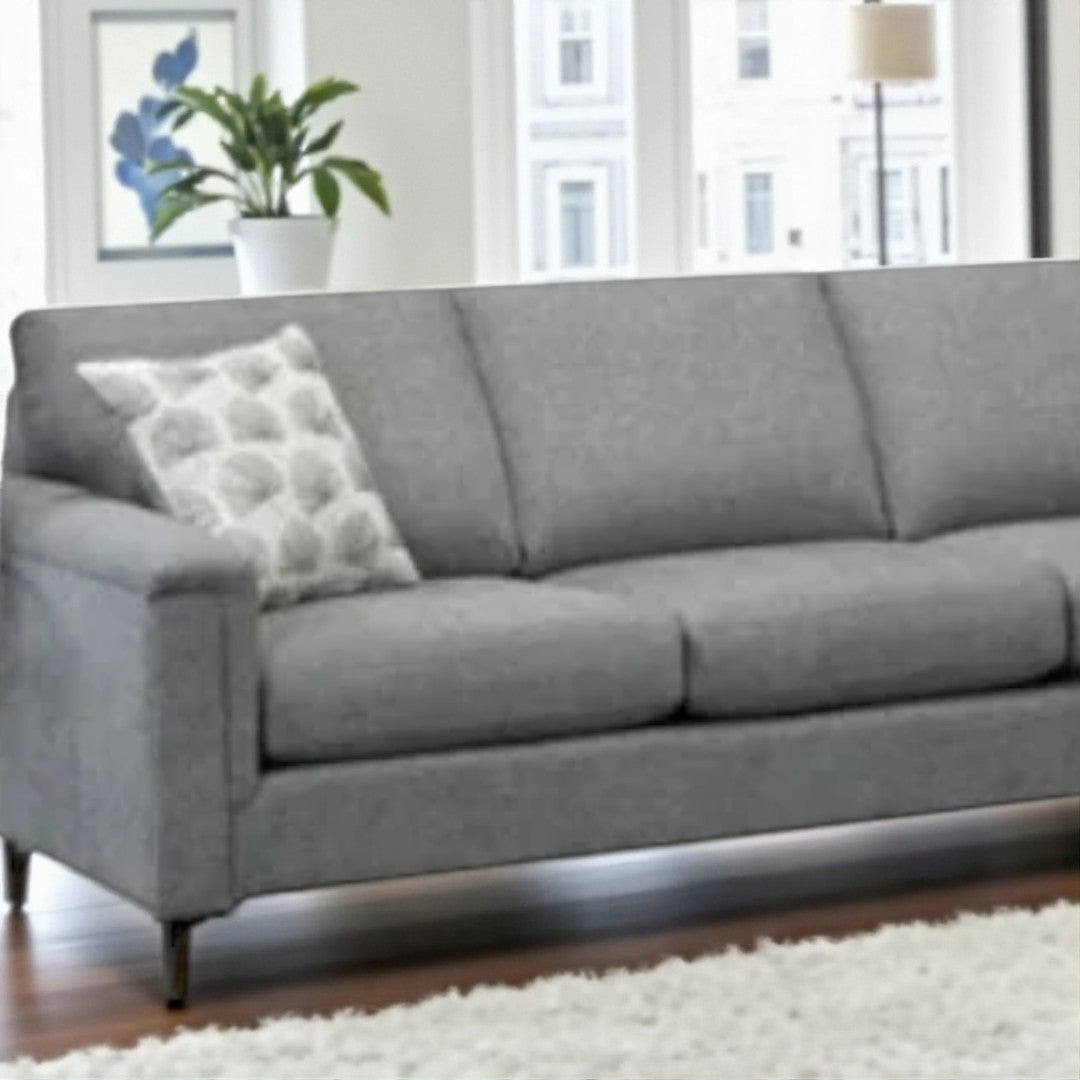 Graceful Design: Transitional L-Shaped Design, Clean-lined silhouette with track arms and a timeless grey finish.