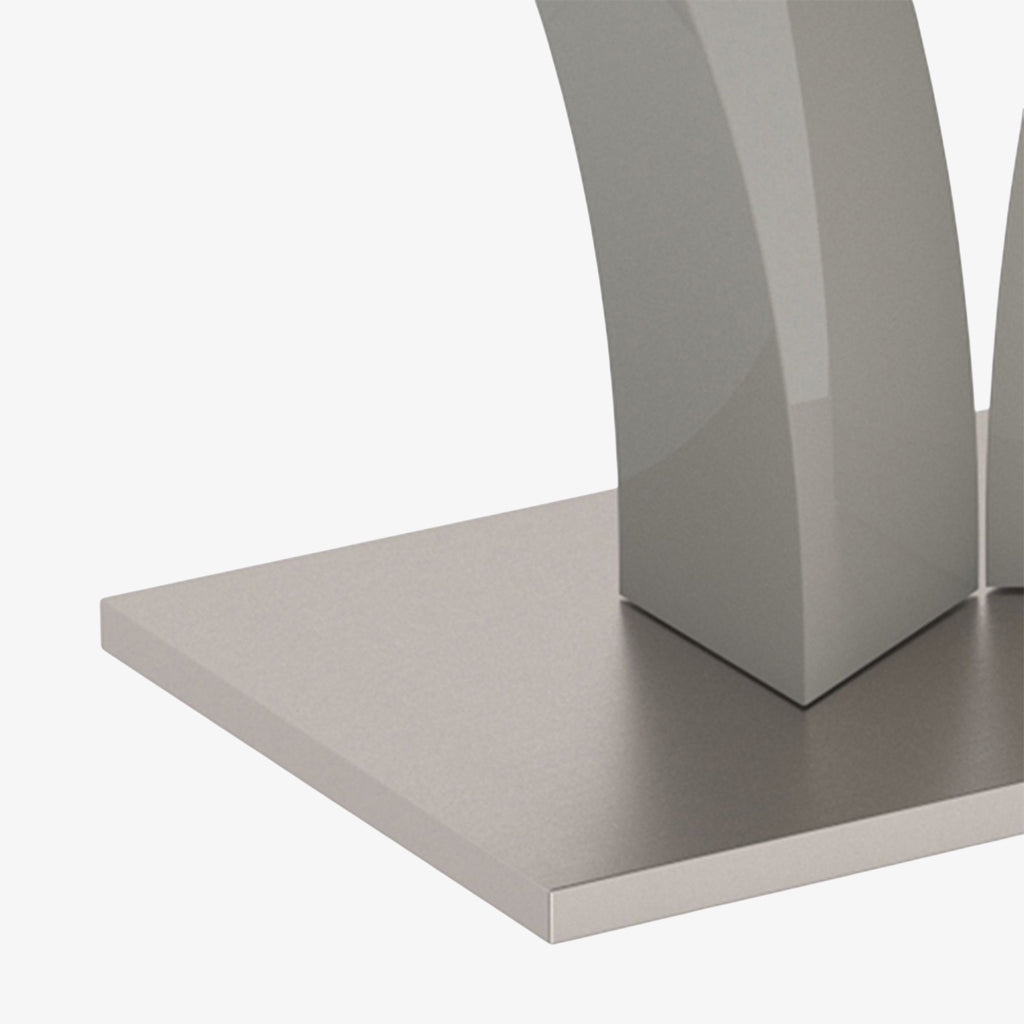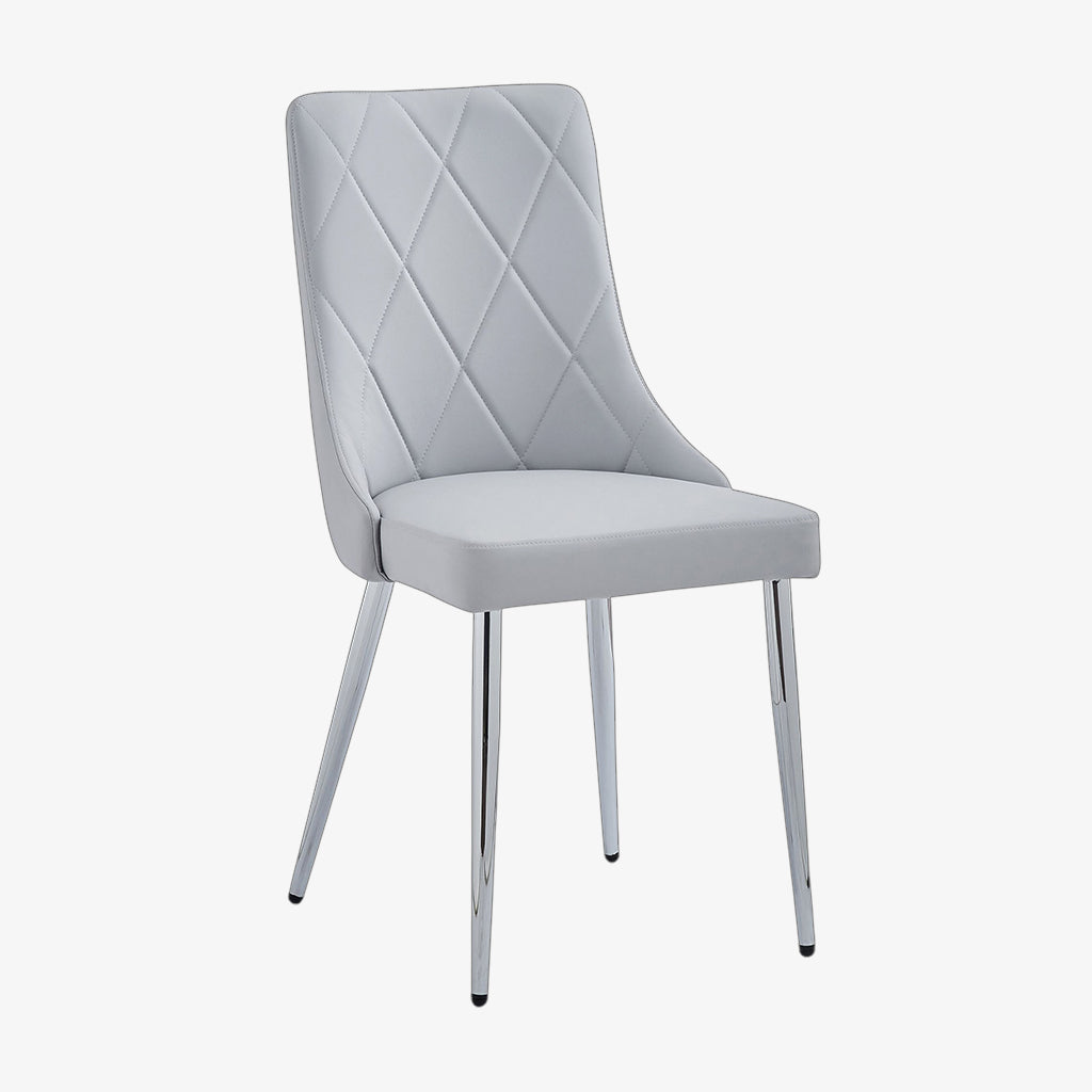 šØ Graceful Design: Timeless contemporary look featuring curved chairs with chrome legs, pedestal-style table base and refined grey finish.